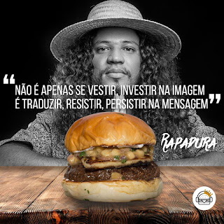 Me aventurei a escolher pelos flows, fui de "Missy Elliot" [burguer bovino, queijo prato e bacon no pão brioche] e dei uma mordidinha no "Tupac"*hehehe* [burguer bovino, queijo gorgonzola, crispy de bacon e cebola empanada no pão australiano].